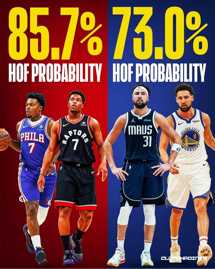 8月19日,数据媒体BBR公布的名人堂入选概率预测显示,凯尔·洛瑞以85.7%的概率领先,而手握四座总冠军的历史级别射手克莱·汤普森则以73.0%的概率紧随其后。