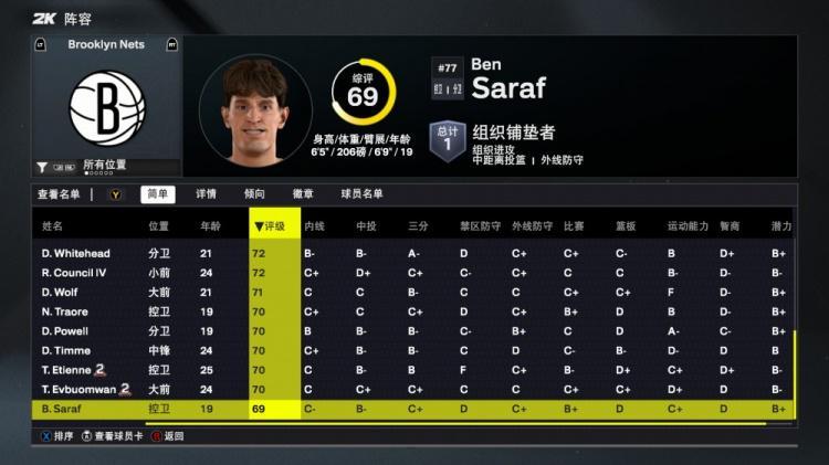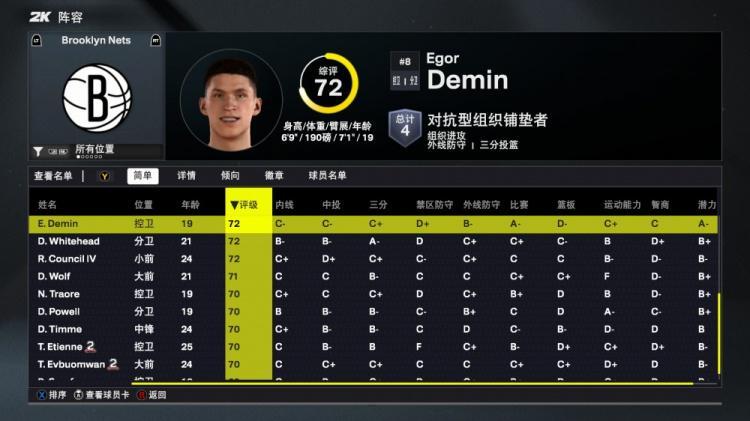 直播吧8月30日讯 NBA2K26各队球员能力值出炉,其中篮网详情如下:
